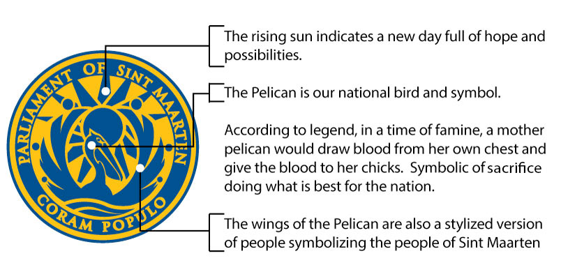 During the early part of February 2011 Parliament extended an invitation to all secondary education students on the island to design a draft logo for the Parliament of Sint Maarten. The task of the students was to create a draft logo based on the theme: “Coram Populo” meaning openly in presence of the people. A total of 28 entries were submitted. Based on the draft logo of the winner, Mr. Loic Bryan, graphic designer, started to work on an abstract. Out of the two designs from the graphic designer, the Presidium and Faction leaders meeting chose the logo that they believed portrayed Parliament the best. On August 21, 2012 the logo was officially established by Parliament in a Public Meeting.